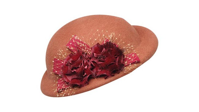 100%純羊毛的帽子, 凹凸有致的時(shí)尚造型,織帶花團(tuán)錦簇的裝飾,將帽子襯托得十分優(yōu)雅
