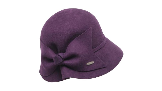 100%純羊毛的帽子,紫色的盆帽采用側(cè)面褶皺設(shè)計,獨特而鮮明,蝴蝶結(jié)大帽身很保暖。